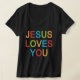 Camiseta con cuello en V de mujer, Negro, XL de adulto
