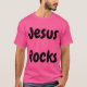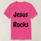 Un diseño audaz e impactante que presenta la silueta de Jesús con la frase "Jesus Rocks" en una fuente moderna y elegante. Muestra tu fe con este artículo de moda.