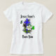 Jesus Save's t Shirt tiene un texto de personalizable para que cambies si quieres y tiene una foto vintage de una cruz con flores encima y una mariposa verde y arcoiris volando alrededor de la parte exterior de la cruz. puedes cambiar el color a lo que quieres que sea la camisa.