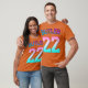 El color es muy bonito al natural, como la foto. El tejido es suave y de buena calidad. Sin defectos en el tintado, ni hilos sueltos o descosidos. Bien la impresión. Los bordes de las letras y el dibujo son nítidos, y el color contrasta muy bien con el de la camiseta.