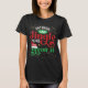 La tipografía estilizada de esta camisa dice "Come Beat and Jingle Like You Mean It" en colores verdes, rojos y blancos, con un sombrero de Santa roja usado por la letra "m". Un spray dorado de confeti también aporta un agradable fondo a los colores oscuros.