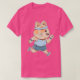 El color es muy bonito al natural, como la foto. El tejido es suave y de buena calidad. Sin defectos en el tintado, ni hilos sueltos o descosidos. Bien la impresión. Los bordes de las letras y el dibujo son nítidos, y el color contrasta muy bien con el de la camiseta.