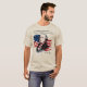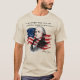 Situado contra una bandera desgastada y representado en un estilo audaz y vintage, este diseño se inspira visualmente en una historia atemporal de injusticia, redención y lucha por la libertad, que refleja las mismas tensiones que moldearon la fundación de Estados Unidos.