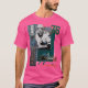 El color es muy bonito al natural, como la foto. El tejido es suave y de buena calidad. Sin defectos en el tintado, ni hilos sueltos o descosidos. Bien la impresión. Los bordes de las letras y el dibujo son nítidos, y el color contrasta muy bien con el de la camiseta.