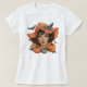 Mujer joven con una camiseta con murciélagos y calabazas. © Tees & Sweats at Zazzle. Esta tee de halloween tiene una encantadora joven con murciélagos y calabazas encima.