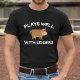 El color es muy bonito al natural, como la foto. El tejido es suave y de buena calidad. Sin defectos en el tintado, ni hilos sueltos o descosidos. Bien la impresión. Los bordes de las letras y el dibujo son nítidos, y el color contrasta muy bien con el de la camiseta.