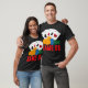El color es muy bonito al natural, como la foto. El tejido es suave y de buena calidad. Sin defectos en el tintado, ni hilos sueltos o descosidos. Bien la impresión. Los bordes de las letras y el dibujo son nítidos, y el color contrasta muy bien con el de la camiseta.