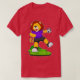 El color es muy bonito al natural, como la foto. El tejido es suave y de buena calidad. Sin defectos en el tintado, ni hilos sueltos o descosidos. Bien la impresión. Los bordes de las letras y el dibujo son nítidos, y el color contrasta muy bien con el de la camiseta.