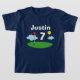 Putt putt infantil mini golf deportes Cumpleaños fiesta T-Shirt. Ilustracion divertido y colorido para los niños. Adecuado para niños y chicas. Celebraciones deportivas con actividades para niños pequeños. Campo de minigolf verde con bandera, bola, nubes y sol. Plantilla de tipografía personalizada. Personalice con nombre y número de edad.