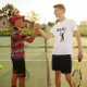 Camiseta Jugador de tenis de EE.UU. usando el punto como bo