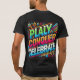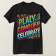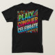 El diseño de la camiseta incluye la frase "Reproducir, conquistar, celebrar" en una fuente vibrante y juguetona. Los colores son brillantes y enérgicos, lo que refleja una sensación de emoción y logro. El diseño general es dinámico y llamativo, lo que lo hace perfecto para todo aquel que acepte un espíritu de competencia y celebración.