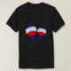 El color es muy bonito al natural, como la foto. El tejido es suave y de buena calidad. Sin defectos en el tintado, ni hilos sueltos o descosidos. Bien la impresión. Los bordes de las letras y el dibujo son nítidos, y el color contrasta muy bien con el de la camiseta.