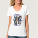 Camiseta con cuello en V de mujer, Negro, XL de adulto