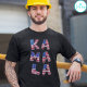El color es muy bonito al natural, como la foto. El tejido es suave y de buena calidad. Sin defectos en el tintado, ni hilos sueltos o descosidos. Bien la impresión. Los bordes de las letras y el dibujo son nítidos, y el color contrasta muy bien con el de la camiseta.