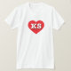 Esta camiseta tiene un vibrante corazón rojo que contiene las letras negrita, blanca y alta del funda KS, la abreviatura oficial de Kansas, el estado del girasol.