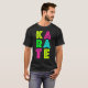 El color es muy bonito al natural, como la foto. El tejido es suave y de buena calidad. Sin defectos en el tintado, ni hilos sueltos o descosidos. Bien la impresión. Los bordes de las letras y el dibujo son nítidos, y el color contrasta muy bien con el de la camiseta.