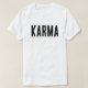 Esta elegante camiseta muestra la palabra "karma" en negritas letras negras, haciendo una declaración sobre el poder de la causa y el efecto. Fabricado con materiales suaves y de alta calidad, esta camisa es cómoda de usar y perfecta para cualquier ocasión. Muestra tu sentido de estilo único con este tee llamativo.