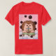 El color es muy bonito al natural, como la foto. El tejido es suave y de buena calidad. Sin defectos en el tintado, ni hilos sueltos o descosidos. Bien la impresión. Los bordes de las letras y el dibujo son nítidos, y el color contrasta muy bien con el de la camiseta.