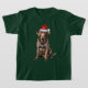 Kids will love having a holiday shirt with their fun-loving lab dog on the front. Dressed in a festive Santa hat, this sweet Chocolate Labrador Retriever dog is sure to make the dog lover's holiday season a tail waggin' experience.