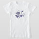 This short sleeve t-shirt is for kids and is shown with a festive holiday print let it snow; this soft t-shirt is made of quality materials and craftsmanship is available in more colors.