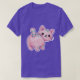 El color es muy bonito al natural, como la foto. El tejido es suave y de buena calidad. Sin defectos en el tintado, ni hilos sueltos o descosidos. Bien la impresión. Los bordes de las letras y el dibujo son nítidos, y el color contrasta muy bien con el de la camiseta.