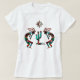 ¡Esta es una camiseta Kokopelli de mujer única de "One of a Kind"! Dos Kokopelli suroeste en turquesa, Naranja y negro jugando a la flauta y bailando alrededor de un cactus bajo el sol. Diseño De Arte Original Del Artista Kerry Miller.