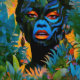 "Kuiráya" - Hoja Pintada - Mujeres En La Amazonía. Con una mirada intensa, es tan llamativa y enigmática como una hoja marcada con los patrones de la naturaleza, su colorida pintura corporal surrealista mezclándose con el bosque, convirtiéndola en una parte viva del paisaje siempre cambiante de la selva tropical.