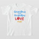 ¡La abuela y el abuelo me aman las camisetas, camisetas largas de la manga, camisetas del raglán, monos, monos del fútbol, monos del tutú, monos orgánicos, vestidos sin mangas, vestidos del volante, camisetas del volante, gorras, camisetas oscuras, camisetas, sudaderas con capucha del jersey, mamelucos, y más para los bebés, los niños, y los niños con un diseño azul, rojo, y del oro del texto y del corazón que lee a la abuela y el abuelo me ama, grandes para la abuela y el muchacho o el chica del abuelo!