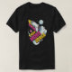 El color es muy bonito al natural, como la foto. El tejido es suave y de buena calidad. Sin defectos en el tintado, ni hilos sueltos o descosidos. Bien la impresión. Los bordes de las letras y el dibujo son nítidos, y el color contrasta muy bien con el de la camiseta.