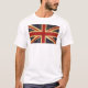 Camiseta blanca de los hombres con la bandera británica en un viejo diseño de estilo antiguo granulado de época. Este diseño arañado presenta la bandera Union Jack en un estilo retro vintage. Este diseño de la bandera del Reino Unido es una gran manera de mostrarte orgulloso de ser británico.