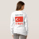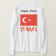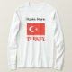 Bandera turca muestra en esta camiseta de una mujer de manga larga la palabra TURQUÍA debajo en colores que coinciden con la bandera. La bandera es roja, con una luna creciente blanca y una estrella blanca. Hay un espacio para agregar tu nombre para un toque personalizado, o bien, agregar el nombre de otra persona para un regalo personalizado.