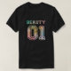 El color es muy bonito al natural, como la foto. El tejido es suave y de buena calidad. Sin defectos en el tintado, ni hilos sueltos o descosidos. Bien la impresión. Los bordes de las letras y el dibujo son nítidos, y el color contrasta muy bien con el de la camiseta.