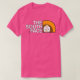 El color es muy bonito al natural, como la foto. El tejido es suave y de buena calidad. Sin defectos en el tintado, ni hilos sueltos o descosidos. Bien la impresión. Los bordes de las letras y el dibujo son nítidos, y el color contrasta muy bien con el de la camiseta.