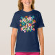 Esta divertida y linda camisa presenta texto con letras a mano que dice: "Kind is Guay," ¡un gran recordatorio para todos! Las flores y hojas de colores destacan en tonos azules, naranjas, rosas y verde limón. Tres pequeñas mariposas y acentos de estrellas aportan un toque especial. *Obra de arte original de Tracey Khalei / Orabella Prints.