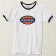 Diseño oval de la señalización que ofrece las vecindades de New York City. Colores oficiales del naranja y del azul de NYC. Vecindad de la cocina del infierno de Manhattan.