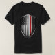 Rusty escudo con delgado símbolo de línea roja en la insignia de Estados Unidos. El término "Línea Roja delgada" es un símbolo utilizado por los departamentos de bomberos para mostrar respeto por el coraje de los bomberos, heridos y muertos en el cumplimiento de su deber.