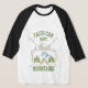 Esta camiseta de manga de 3/4 tiene un tipo de letra de Tan Jambore con letras verdes contorno azul que muestra la frase "Faith Can Move Mountains" más mangos de esquí y gafas con una cordillera y árboles en la zona de los ojos en este tema de cita bíblica. Éstos tienen un cuerpo blanco o de ceniza con mangas y collarín acoplados con la aguja doble cosida en el fondo y mangas durante una larga duración.
