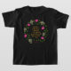 Camiseta con flores moradas rosas con hojas verdes y en falso Relieve metalizado de oro la cita "Dudas que las estrellas sean fuego, Dudas que el sol no se mueva, Dudas que la verdad sea un mentiroso, pero nunca dudes que amo" de la Hamlet de William Shakespeare. *Tenga en cuenta que la marca de agua Zazzle que aparece en la vista previa del zoom no aparecerá en el producto impreso final. © Bookish y WonMart