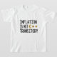 Impresionante diseño de bitcoin con un monstruo de bitcoin comiendo dólares y euros y la cita "La inflación no es transitoria".