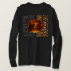 La lentejuela larga negra de la manga soña la camiseta con la imagen de bronce de Buda. Impresión del collage de las gotas y de las lentejuelas de la semilla con una fotografía de un ornamento de Buda. Diseño creado de mi trabajo cosido mano de la gota. Para considerar más diseños por sueños de la lentejuela satisfacen visitan mi tienda.