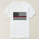 Esta camiseta ofrece una línea roja fina bandera americana en honor de bomberos. El texto de la muestra tiene un nombre para que usted personalice.