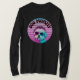 Este es un diseño genial para una perra mamá con un perro usando gafas de sol y una puesta de sol en tonos rosas.