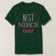 El color es muy bonito al natural, como la foto. El tejido es suave y de buena calidad. Sin defectos en el tintado, ni hilos sueltos o descosidos. Bien la impresión. Los bordes de las letras y el dibujo son nítidos, y el color contrasta muy bien con el de la camiseta.