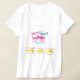 Mamá puede llevar su camiseta de tiburón rosa mostrando a su bebé tiburón amarillo.
