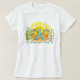 Este diseño colorido y lúdico incluye la frase "La playa llama y yo debo ir" con un sol amarillo vibrante. Es perfecto para los amantes de la playa, los surfistas y los viajeros en verano o en cualquier día.