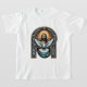 Esta obra de carácter visual reúne elementos de espiritualidad y naturaleza. Centrado en la obra de arte está una serena representación de Cristo, enaltecido por la luz radiante, encarnando la presencia divina y la gracia. Debajo, una paloma blanca extiende sus alas, simbolizando la paz y el Espíritu Santo. A su alrededor, las olas chocan con energía dinámica, representando la fuerza de la naturaleza y el poder tranquilizador de la fe. Enmarcado en una estilizada "R", el diseño combina artísticamente símbolos de armonía, reverencia y unidad.