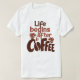 Esta camiseta blanca muestra el texto "La vida comienza después del CAFÉ" en un color marrón cálido, con la palabra "CAFÉ" en una fuente grande y estilizada que incorpora formas de frijol de café. Se colocan pequeños ilustraciones de frijol de café alrededor del texto.