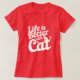 Un gráfico de texto blanco sobre un fondo negro. El texto dice "La vida es mejor con un gato" en un tipo de letra estilizada y cursiva. Una pequeña silueta de un gato se coloca entre las palabras "Mejor" y "con". Este diseño es perfecto para los amantes de los gatos y luciría bien en camisetas, tazas u otros objetos. El texto en negrita y blanco sobresale en el fondo negro, haciendo que sea fácil de leer y entender.