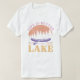 Un diseño moderno para las vacaciones de verano con un barco al atardecer, que dice: La vida es mejor en el lago.
