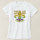 " Lánceme algo señor" con una flor de lis púrpura, verde y del oro en una camiseta llevar a los desfiles del carnaval.